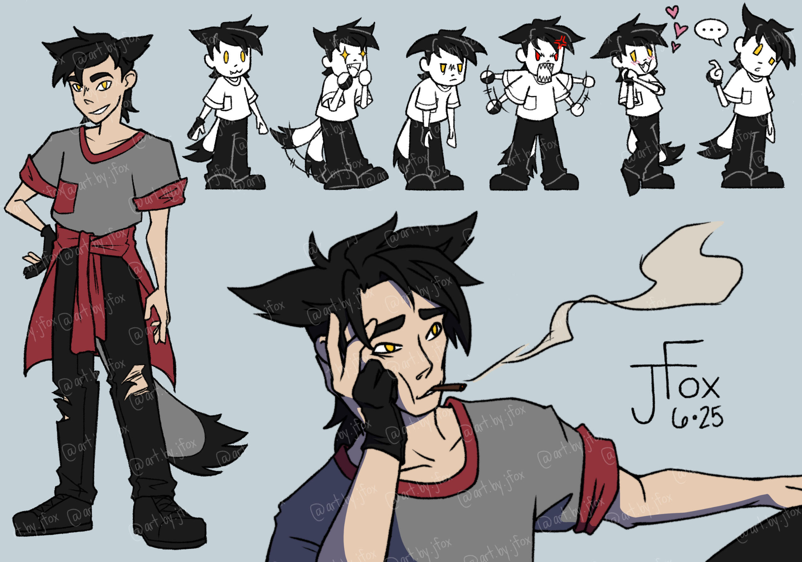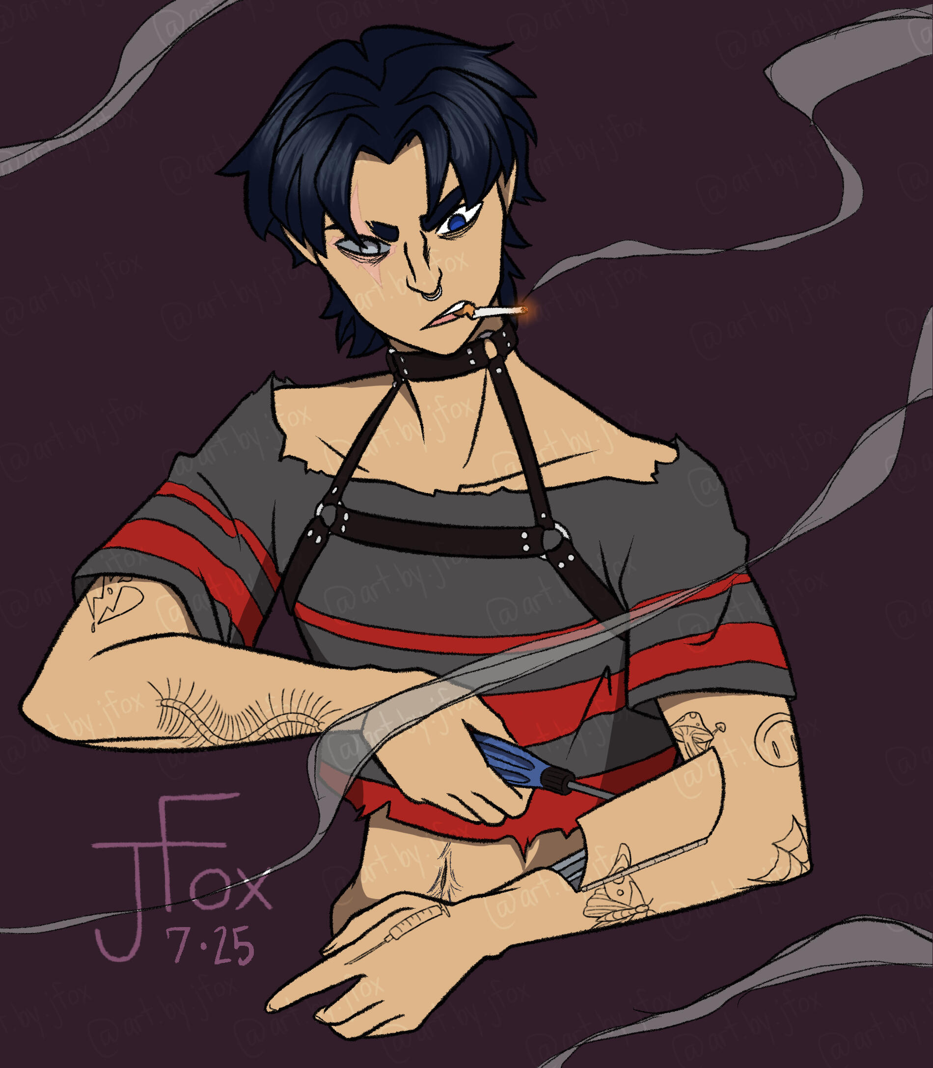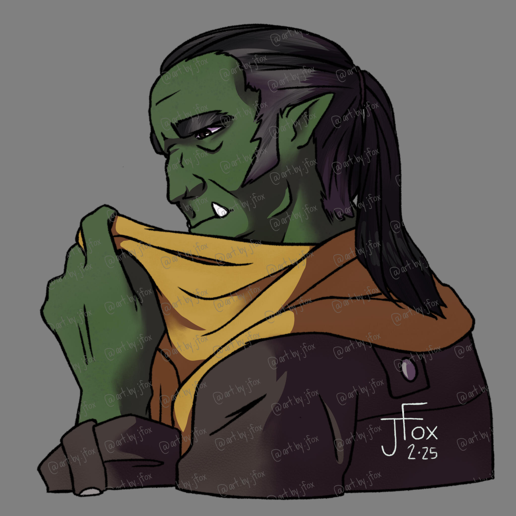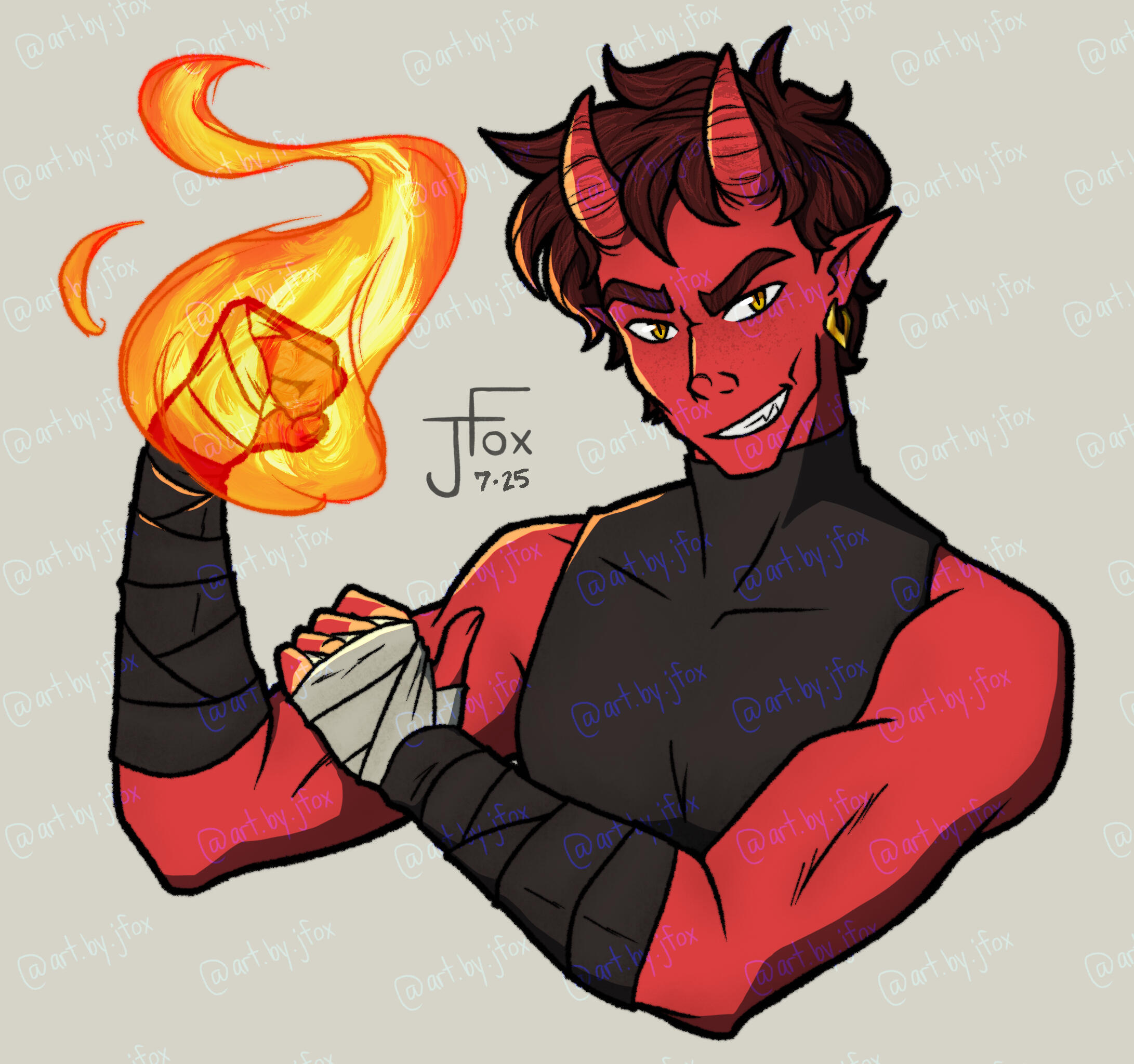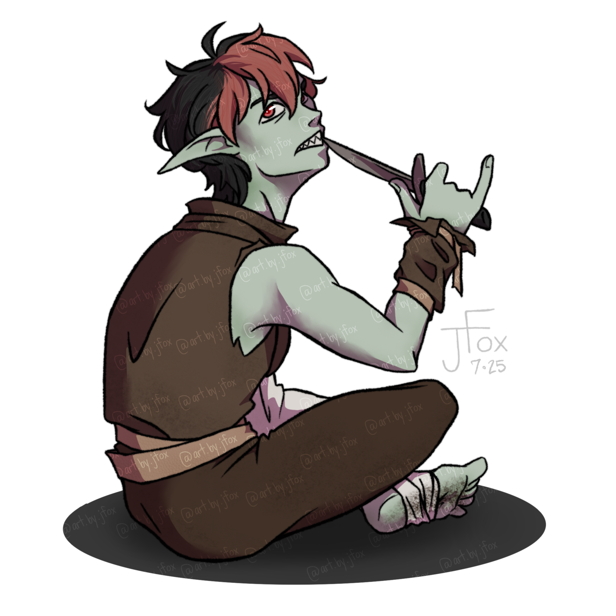Hello and welcome to my humble abode!! I’m Jaden Rae, or JFox, and I’m a queer freelance artist and a fresh-out-the-bag content creator.I am, for the most part, a character designer. Dungeons & Dragons is my special interest and it shows, so especially if you’re looking for some kickass character art for your own PCs or fantasy OCs, you’ve come to the right place!If you like what you see, check out my socials below, and share this page with friends if you want to help a small creator grow! Whatever the case may be, I’m glad you’re here. Happy browsing!
